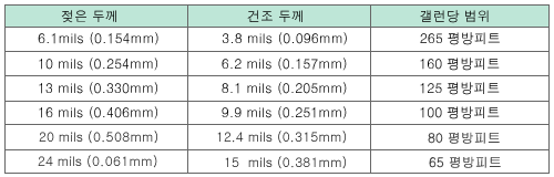 µÎ²² 9.5~24mils(°ÇÁ¶ ½Ã 6~15mils)Á¤µµÀÇ µÎ²²·Î µµÆ÷ ÇÕ´Ï´Ù.